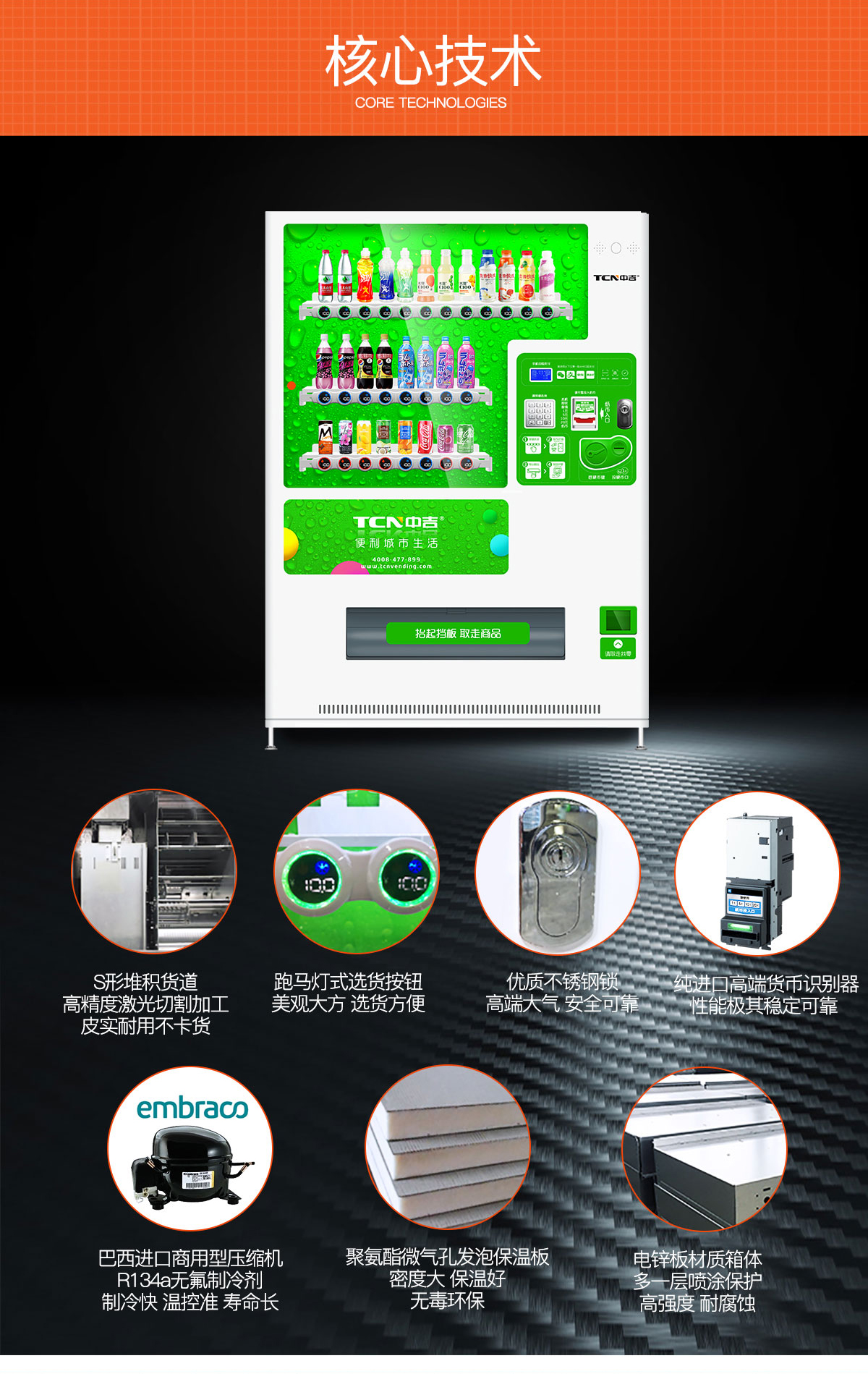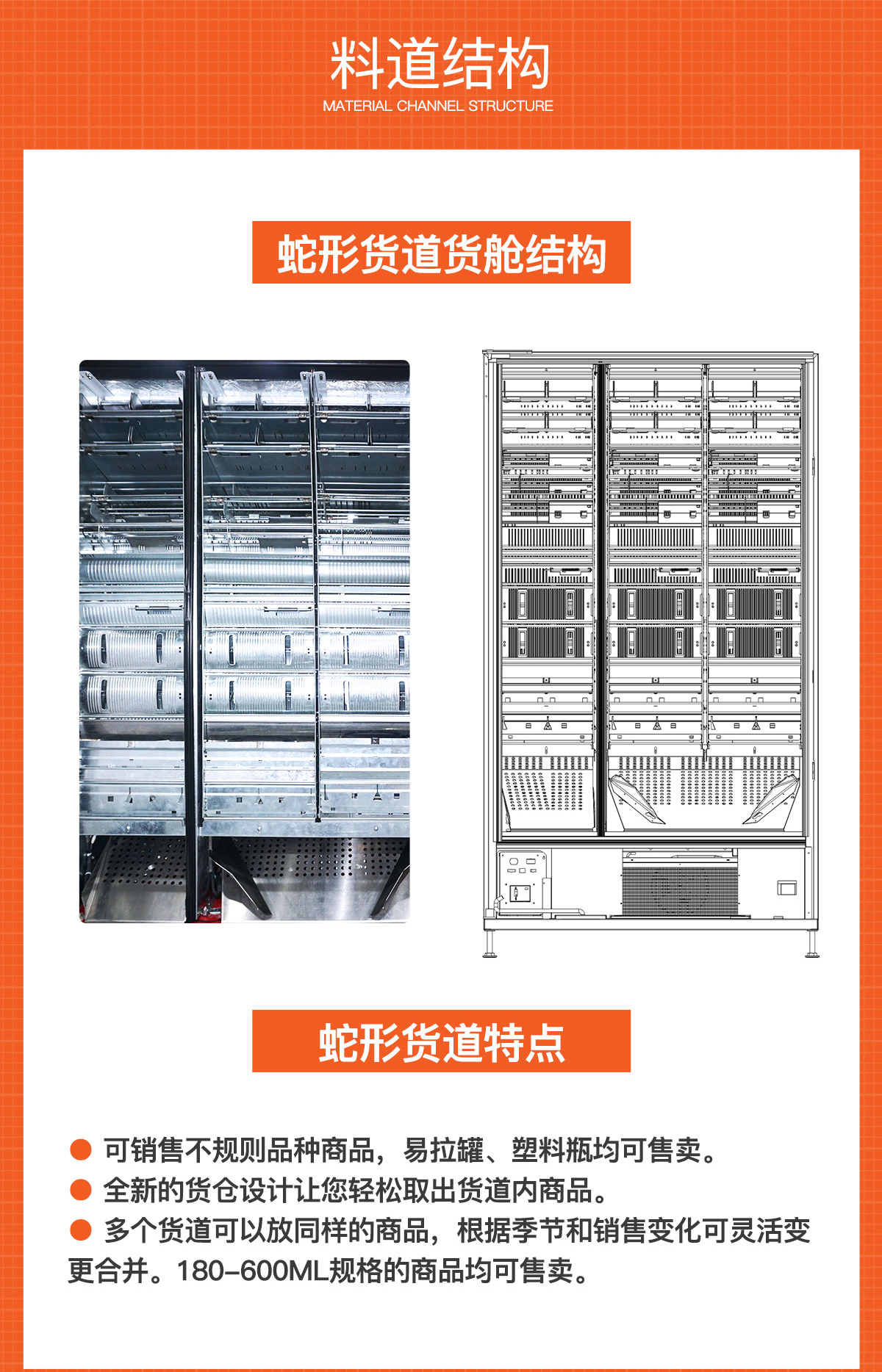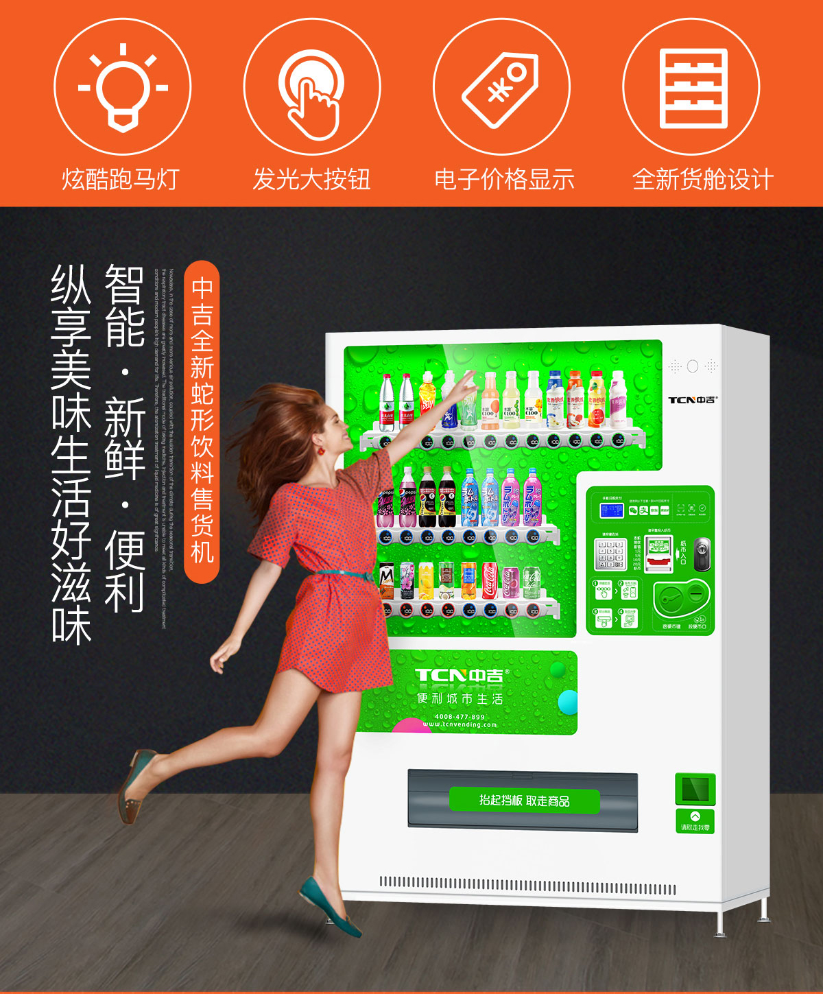 中吉智能蛇形货道饮料售货机_自动售货机_自动贩卖机 | 智能电子价格标签,多色LED跑马灯,可制冷,制热