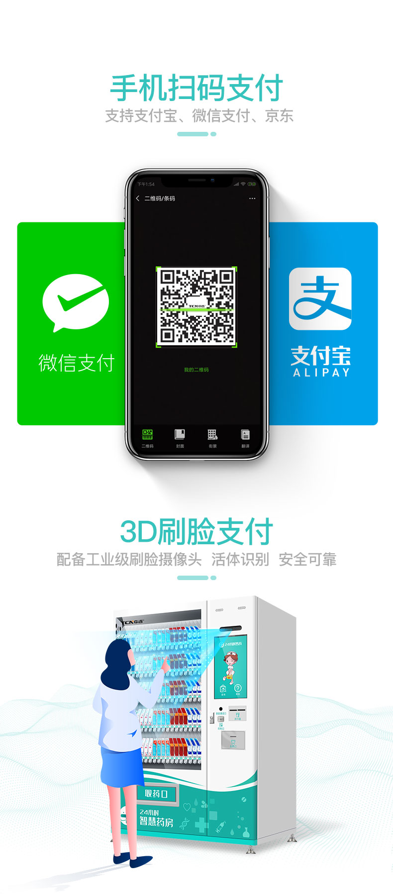 中吉智慧医药触屏自助售药机滑式货道24H自助售药站 | 医药品、医药耗材类专业售货机,可选配制冷