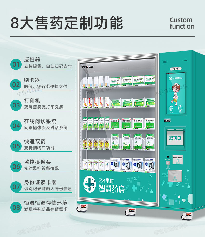 中吉药品无人售货机24小时自动售药机保健品自动售货机 | 取货篮自动寻址,取货过程平稳适合易碎商品