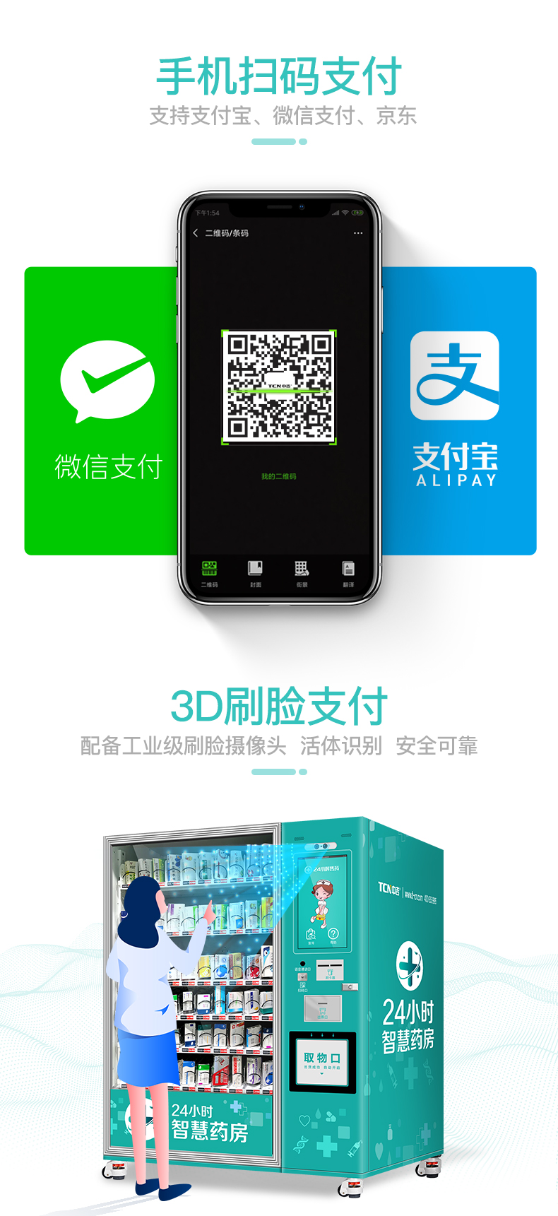 中吉双柜触屏智能售药机自动药品无人售卖机 | 无接触,防污染