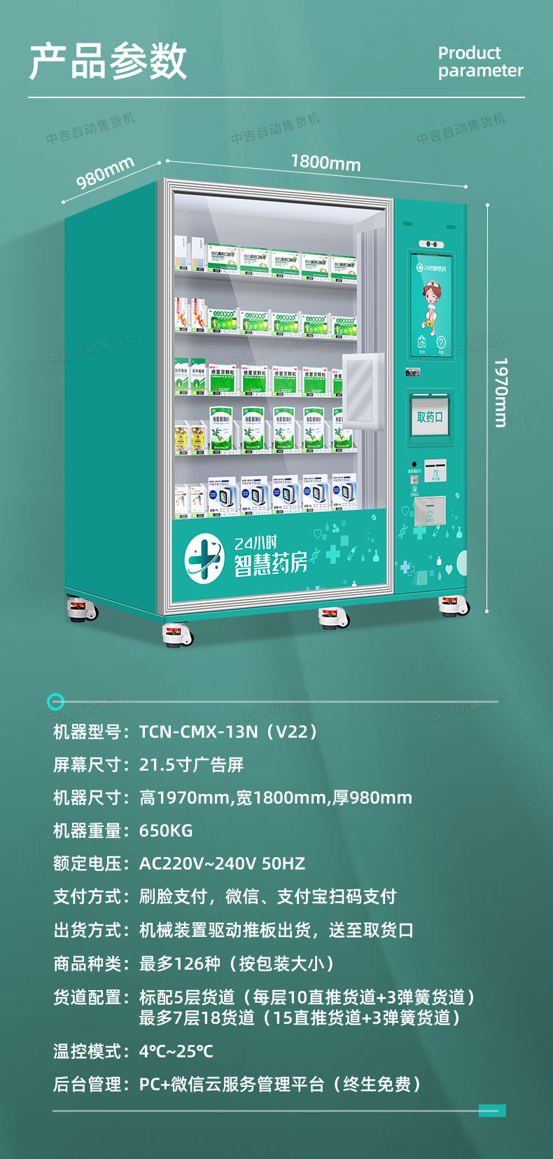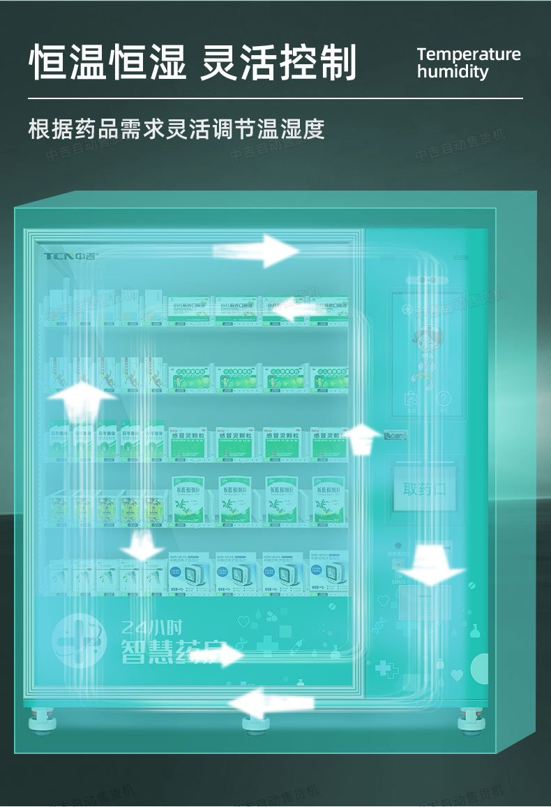 中吉智慧医药触屏自助售药机滑式货道24H自助售药站 | 医药品、医药耗材类专业售货机,可选配制冷